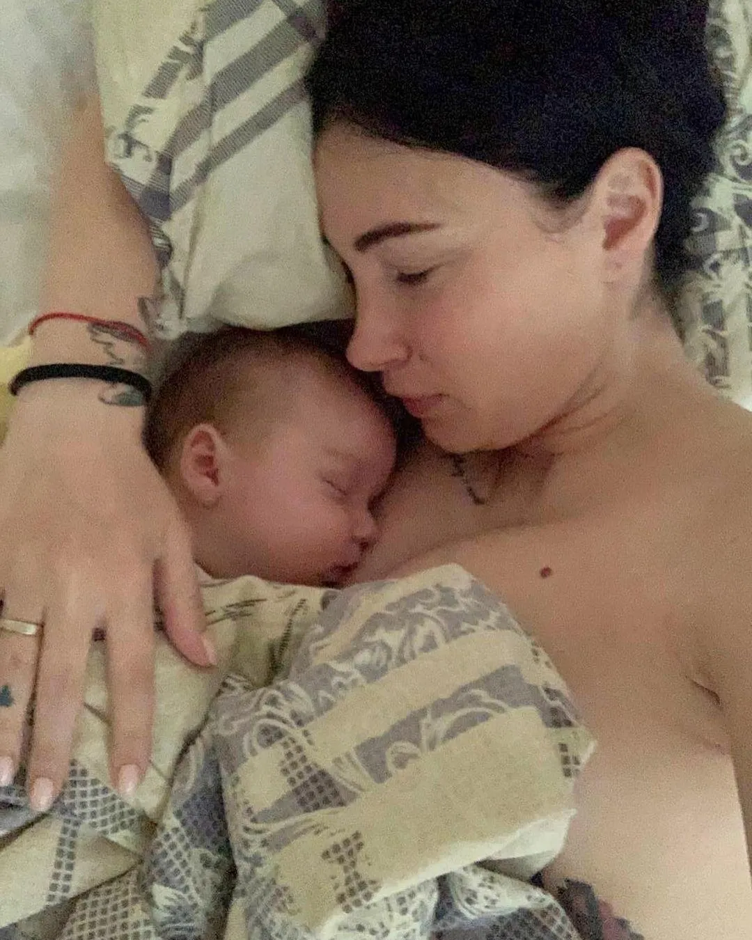 - На початку квітня Анастасія Приходько розповіла, що стала матір'ю втретє. Згодом вона зізналась, що народила хлопчика, якого назвала Лукою. Артистка була відвертою перед фанами, тому часто показувала, як годує сина грудьми.