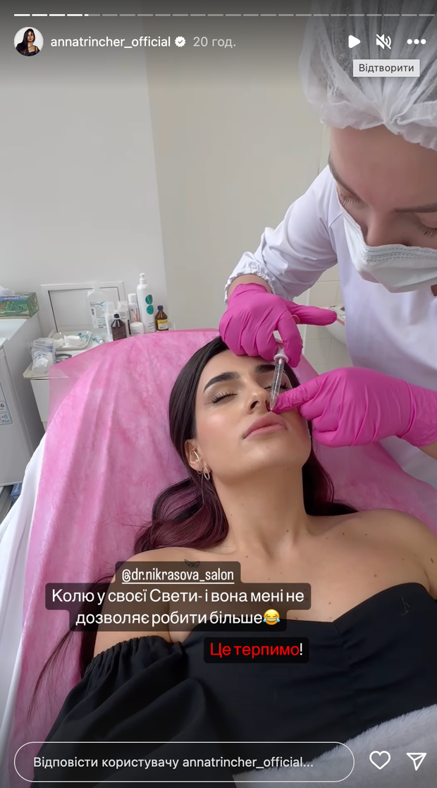 Анна Трінчер збільшила губи / Фото з її інстаграм-сторіс