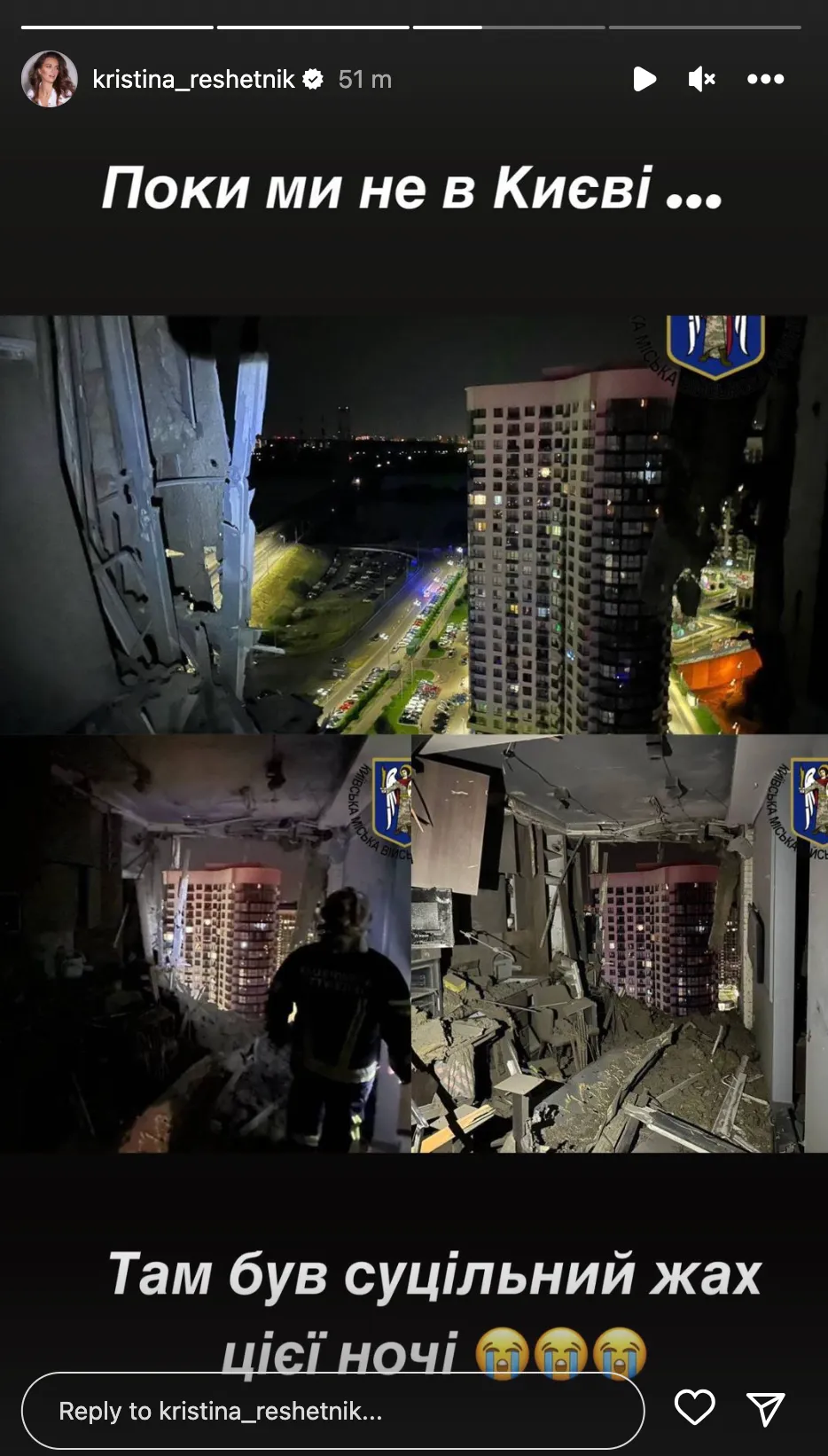 Реакція Христини Решетник на нічну атаку Києва / Скриншот з інстаграму