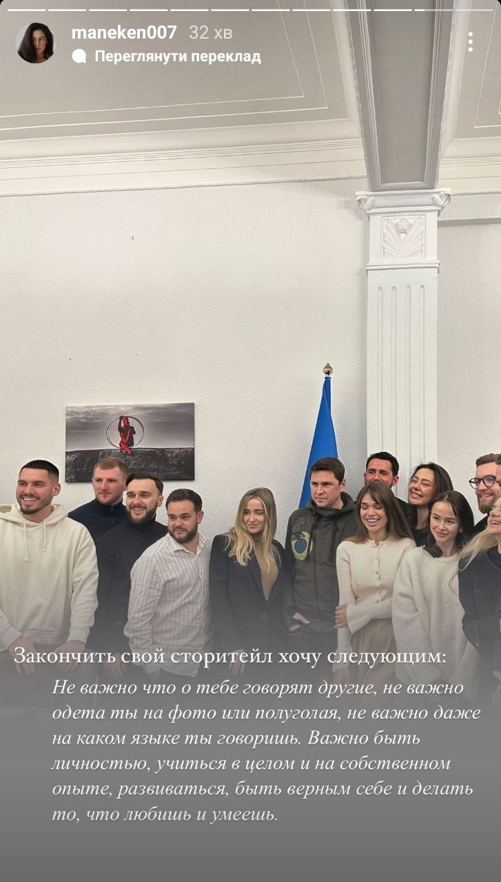 - Ксюша Манекен, яка ще й отримала відзнаку від ГУР МО, відома висловлюваннями про те, що мова – неважлива. Це вона згадала й після зустрічі з Подоляком. У 2020 році блогерка заявляла, що неважливо й те, чий Крим, "головне, щоб там було мирно".
