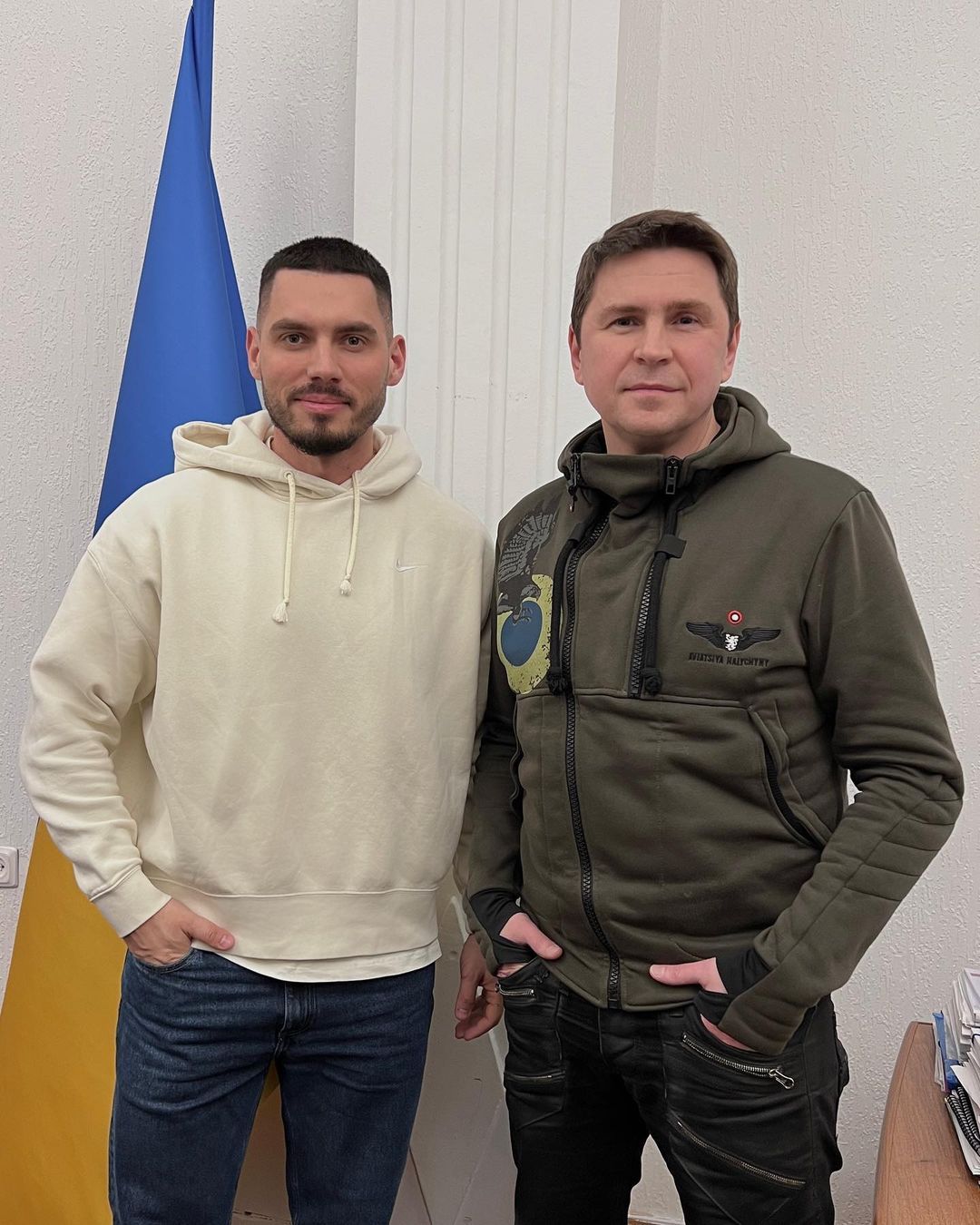 З Михайлом Подоляком зустрілися Нікіта Добринін, Саша Бо, Євген Таллер, Ксюша Манекен, Настя Єлісєєва, Таня Парфільєва, Олександр Заліско та інші медійні персони, частина з яких були присутні віртуально. Як повідомили самі блогери, вони обговорювали мотивацію населення та підтримку бойового духу.