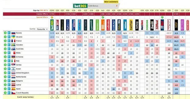 Водночас учасник від Росії Сергій Лазарєв так і залишився фаворитом конкурсу за версією букмекерів, йдеться на на сайті з моніторингу Оddschecker.