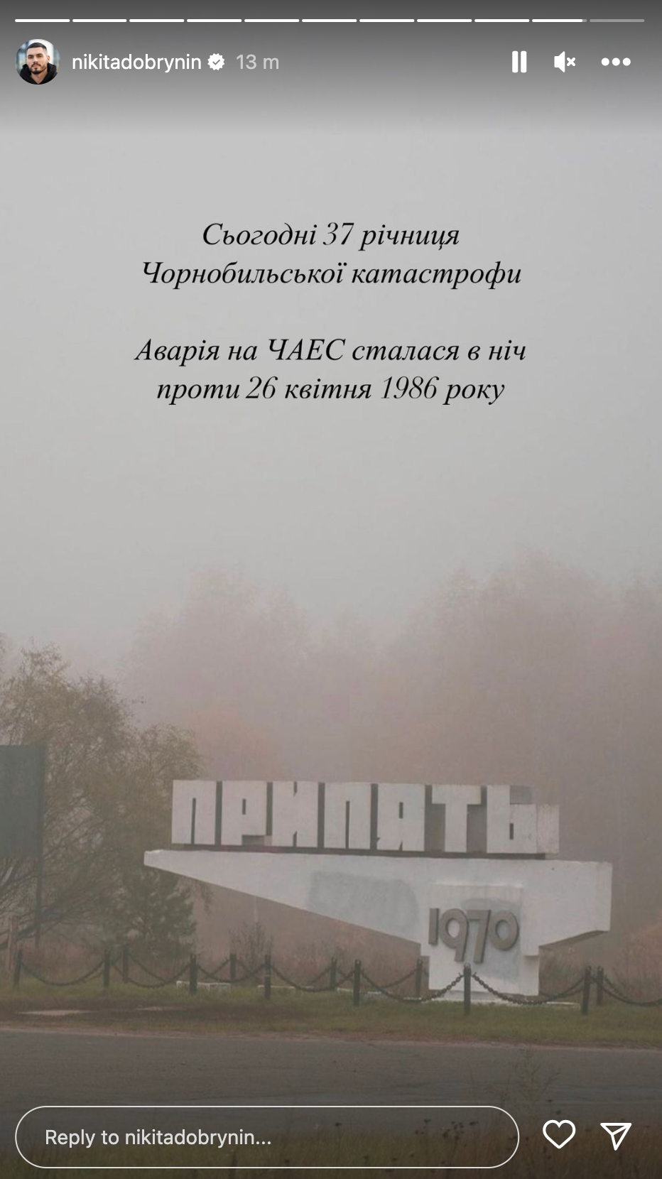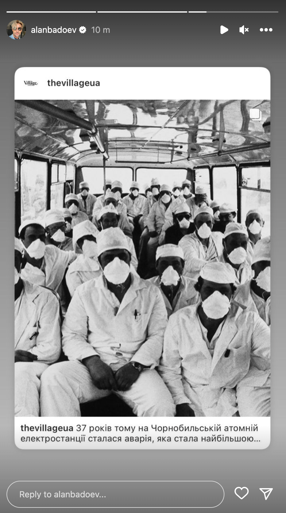 Андрій Бєдняков пригадав Чорнобильську катастрофу / Скриншот його інстаграм-сторіс