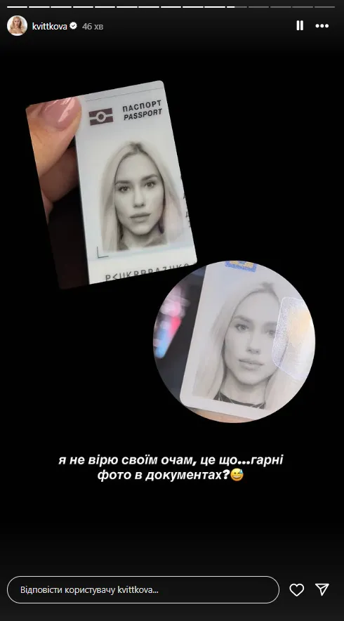 Так, Квіткова похвалилася підписникам, що зробила нові фотографії для свого закордонного паспорта.