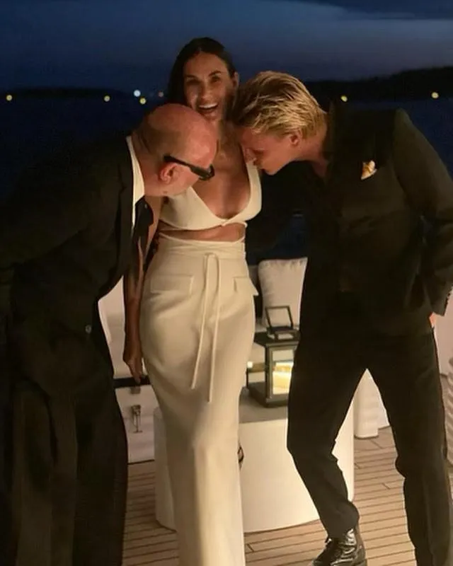 Підтвердженням цього стала бурхлива реакція зіркових чоловіків на образ Демі Мур. Вона опублікувала фото, на якому відомий 61-річний флорист Ерік Бутербо та юний актор Патрік Хілгарт не можуть відвести очей від її декольте.
