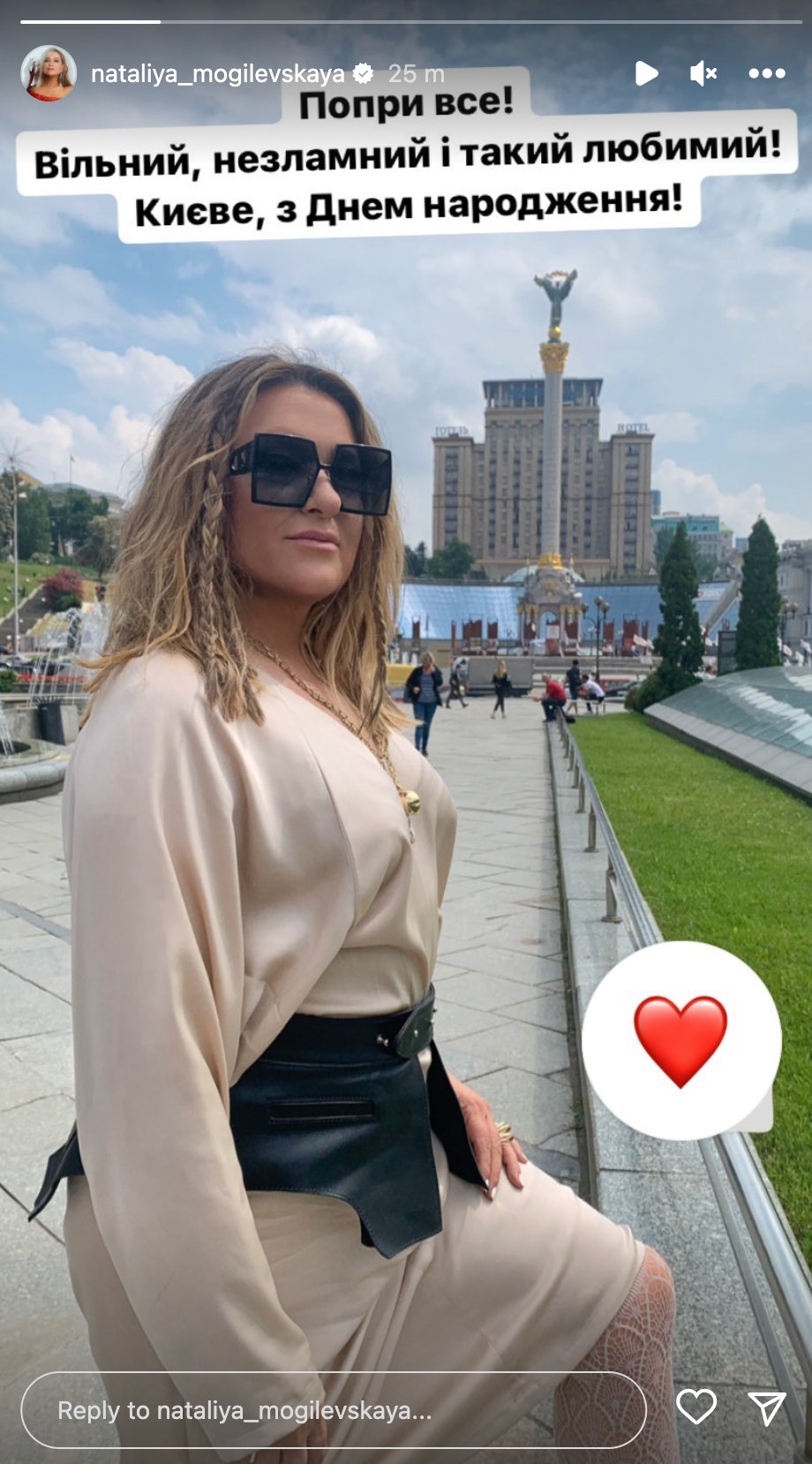 Ксенія зізналася, що для неї Київ – її дім та фортеця. "І нехай жодні ганебні війни і темні сили не зможуть порушити досконалість твого простору. З днем народження, Великий", – написала акторка.