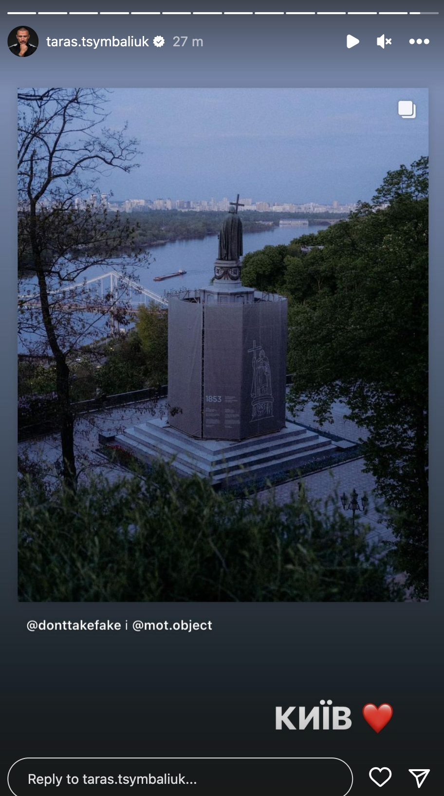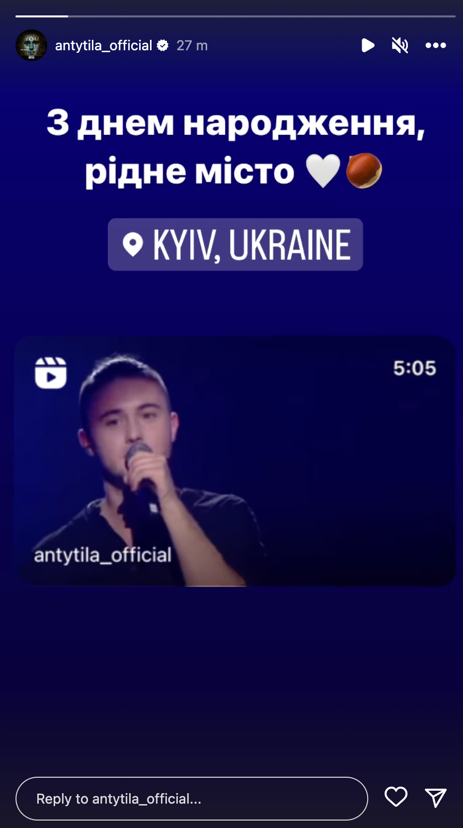 Інші українські артисти теж долучилися до привітань. У своїх соцмережах вони опублікували сторіс з вітаннями Києву з Днем міста.