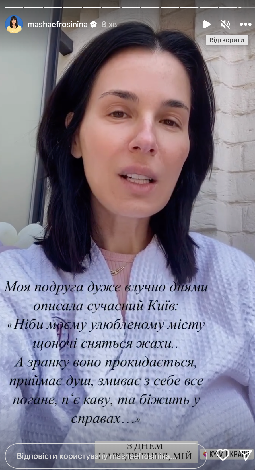 Акторка додала, що любить Київ і хоче, щоб він назавжди залишався зеленим, квітучим, затишним і дорогим серцю.