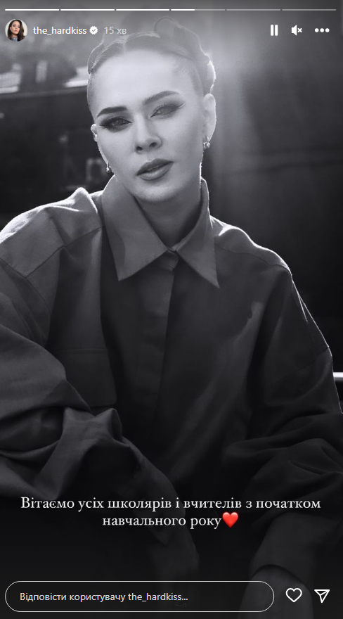 Співачка зробила фото у своїй шкільній формі та звернулася до фанів: "1 вересня хочу нагадати дітям та батькам — не бійтеся відрізнятися. Не всі важливі знання — всередині підручника, а оцінка — не визначає успіх у житті. Торуйте свій шлях, смійтеся на перервах, малюйте квіти на полях зошитів і дружіть назавжди".