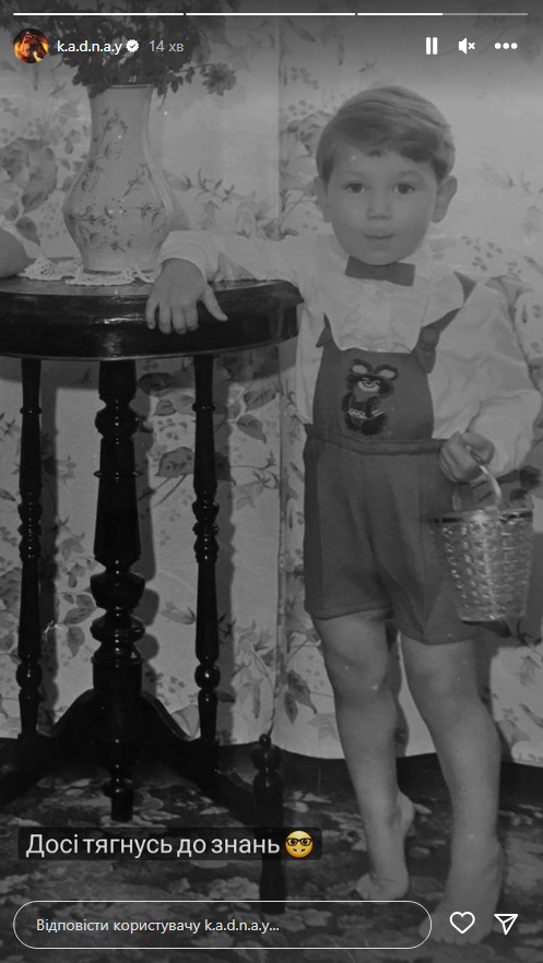 Радіоведучий привітав підписників у інстаграм-сторіс та опублікував своє архівне фото зі школи. На фото він позував в окулярах та з невеликим букетом квітів.
