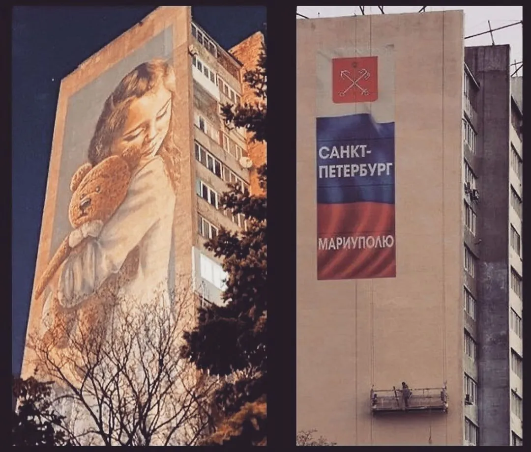 На додачу ведучий опублікував фото муралу "Мілана", що був символом надії для Маріуполя. В листопаді окупанти знищили стінопис, а на його місці зобразили пропагандистську маячню.