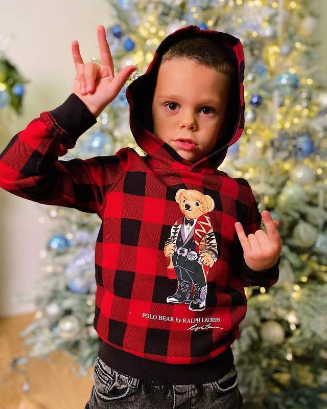 На такому святковому тлі Христина Решетник позувала разом з трьома синами, одягненими у яскраві светри зі святковою тематикою. Сама зіркова дружина та матуся позувала у чорних джинсах та білому светрі із зображенням ведмедика.