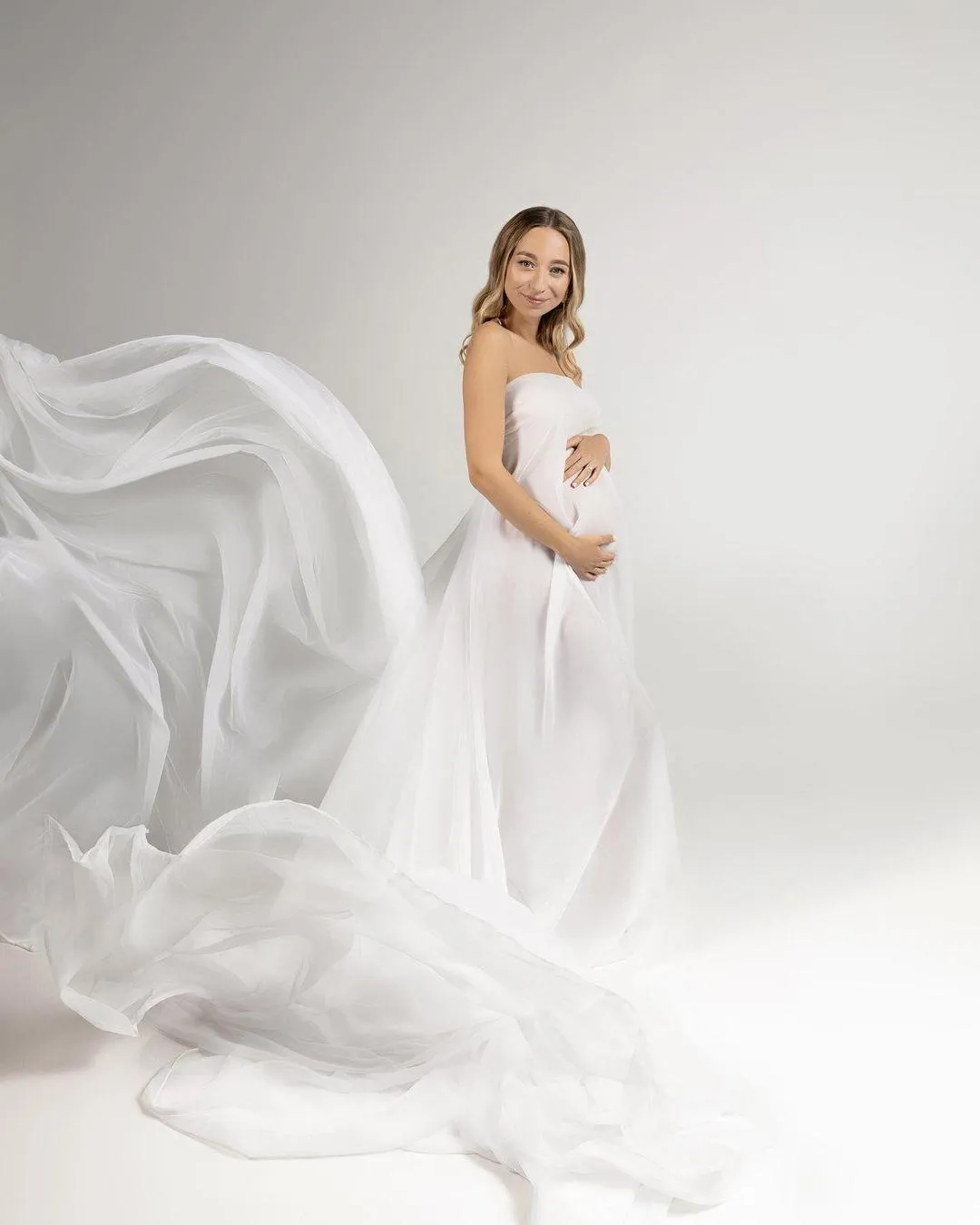 Дружина Віктора Павліка опублікувала зворушливі світлини з фотосесії, яку вирішила зробити, щоб запам'ятати свій особливий стан. Вона постала перед камерою на світлому тлі у повітряній білосніжній сукні без бретелей та з довгим шлейфом, що став родзинкою зйомки.