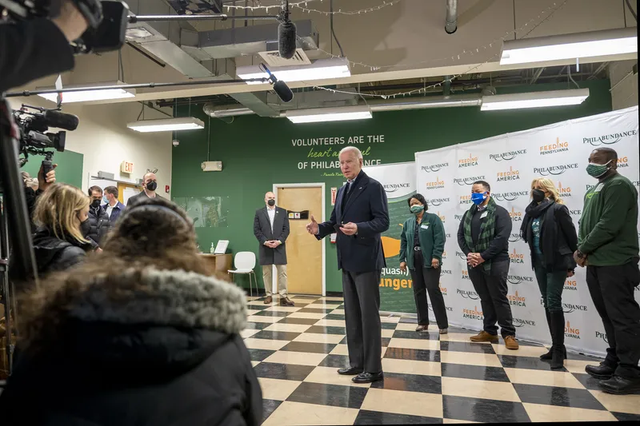 Пара розкладала продукти у спеціальні коробки. Після "робочого дня" Джо Байден виступив з промовою.