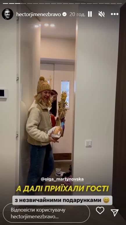 Мартиновська подарувала колезі букет з сухоцвіту, пожартувала, що "квіти сухі, як і тіло Ектора". Також він отримав від подруги банку томатного соку. Кухаря особливо вразила зелена вишиванка, яку подарували друзі.