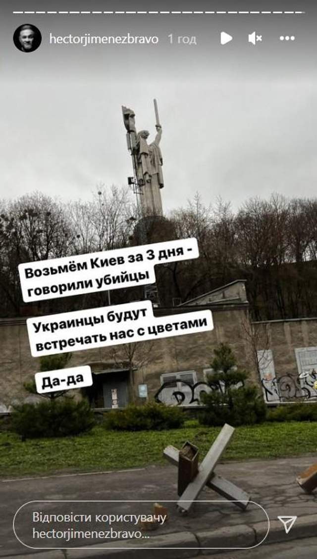 "Візьмемо Київ за 3 дні – говорили вбивці. Українці будуть зустрічати з квітами. Так-так", – іронічно написав Хіменес-Браво.