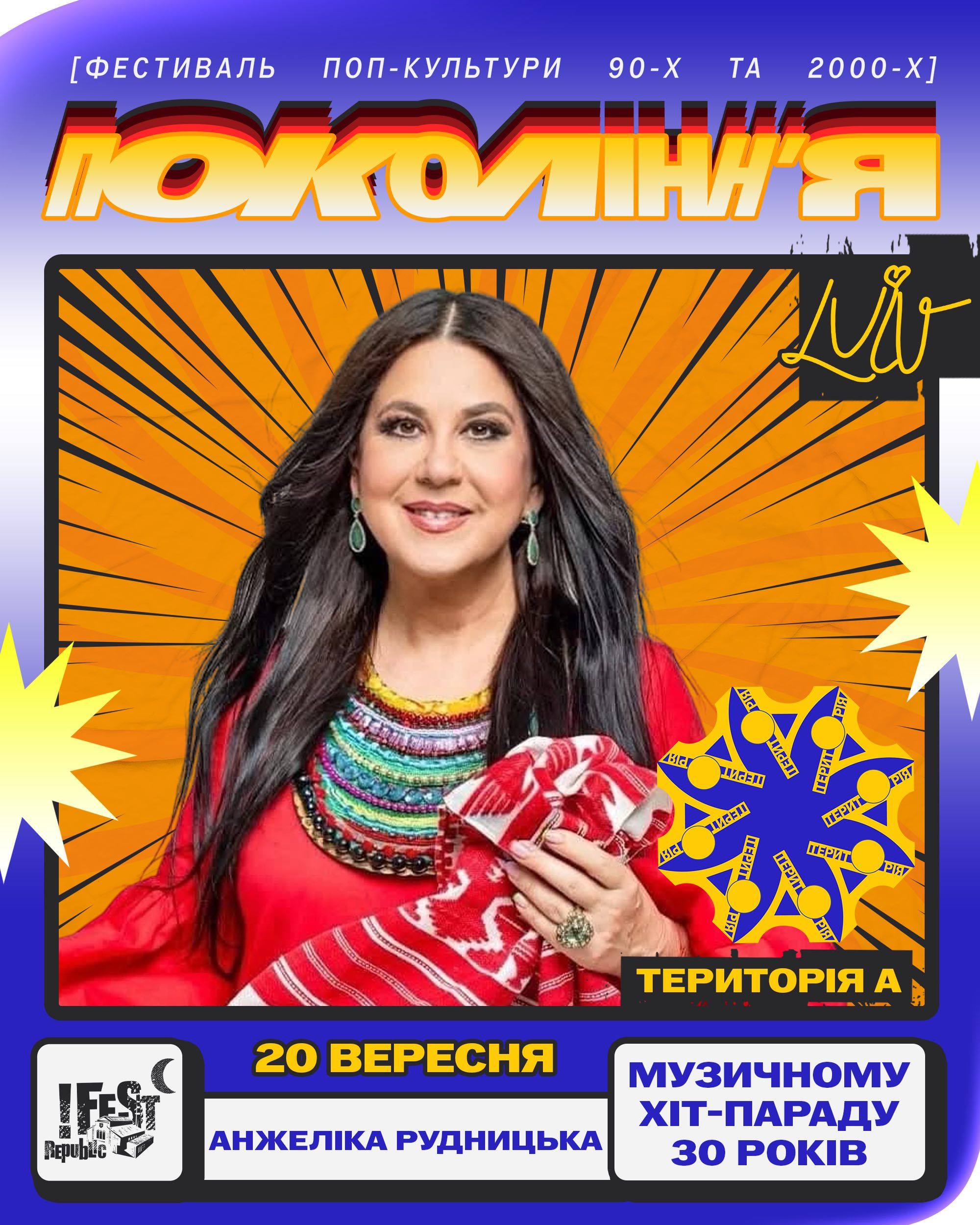 - 19-21 вересня у Львові на фестивалі "Покоління" зберуться зірки 90-х і 00-х, такі як Анжеліка Рудницька, Руслана та гурти "Аква Віта" і AVIATOR.