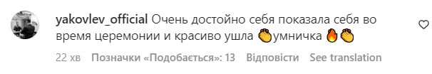 - "Дуже достойно показала себе під час церемонії та красиво пішла. Розумничка!"