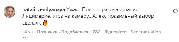 - "Жах. Повне розчарування. Лицемірство. Гра на камеру. Алекс зробив правильний вибір".