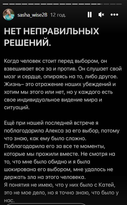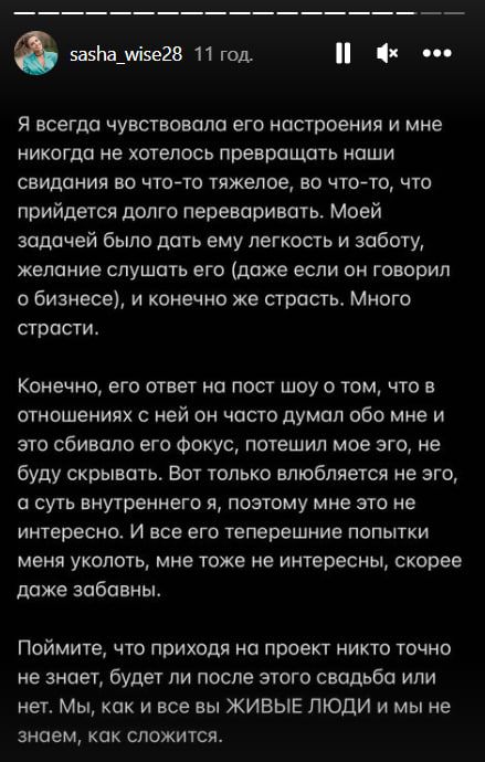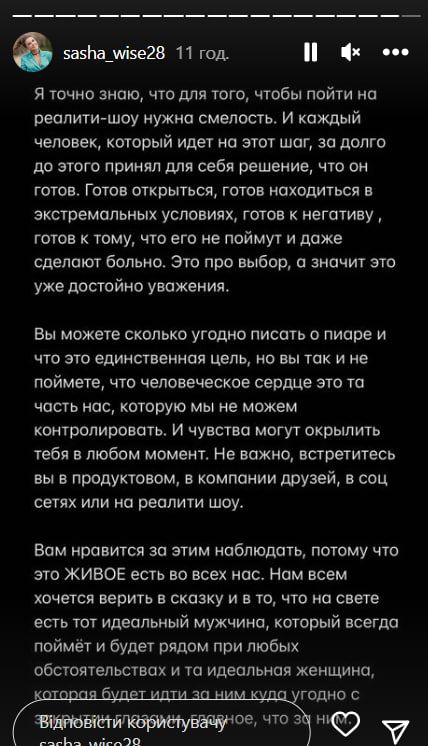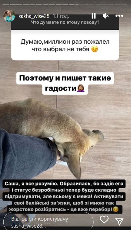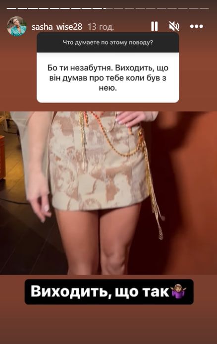 Саша Мудра про розрив Топольського та Лозовицької / Скриншот інстаграм-сторіс дівчини