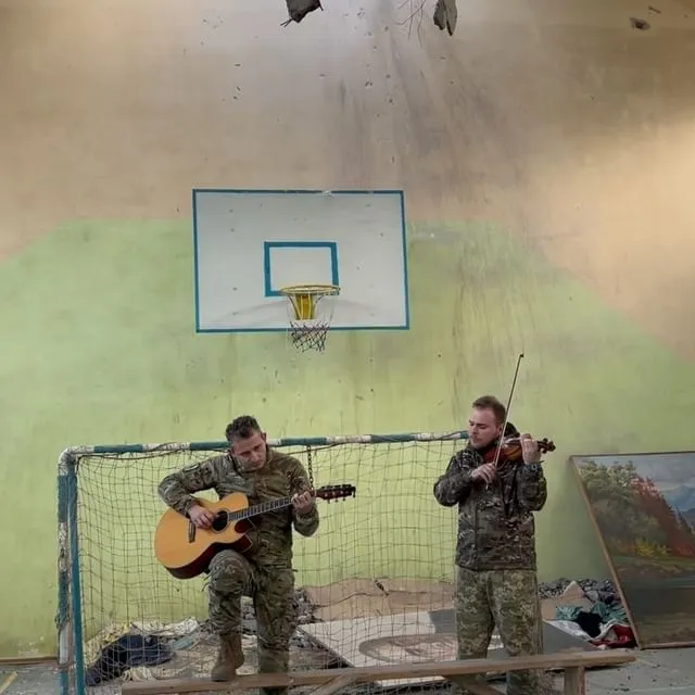 Коля Сєрга виступає у зруйнованій будівлі / Фото з його соцмереж