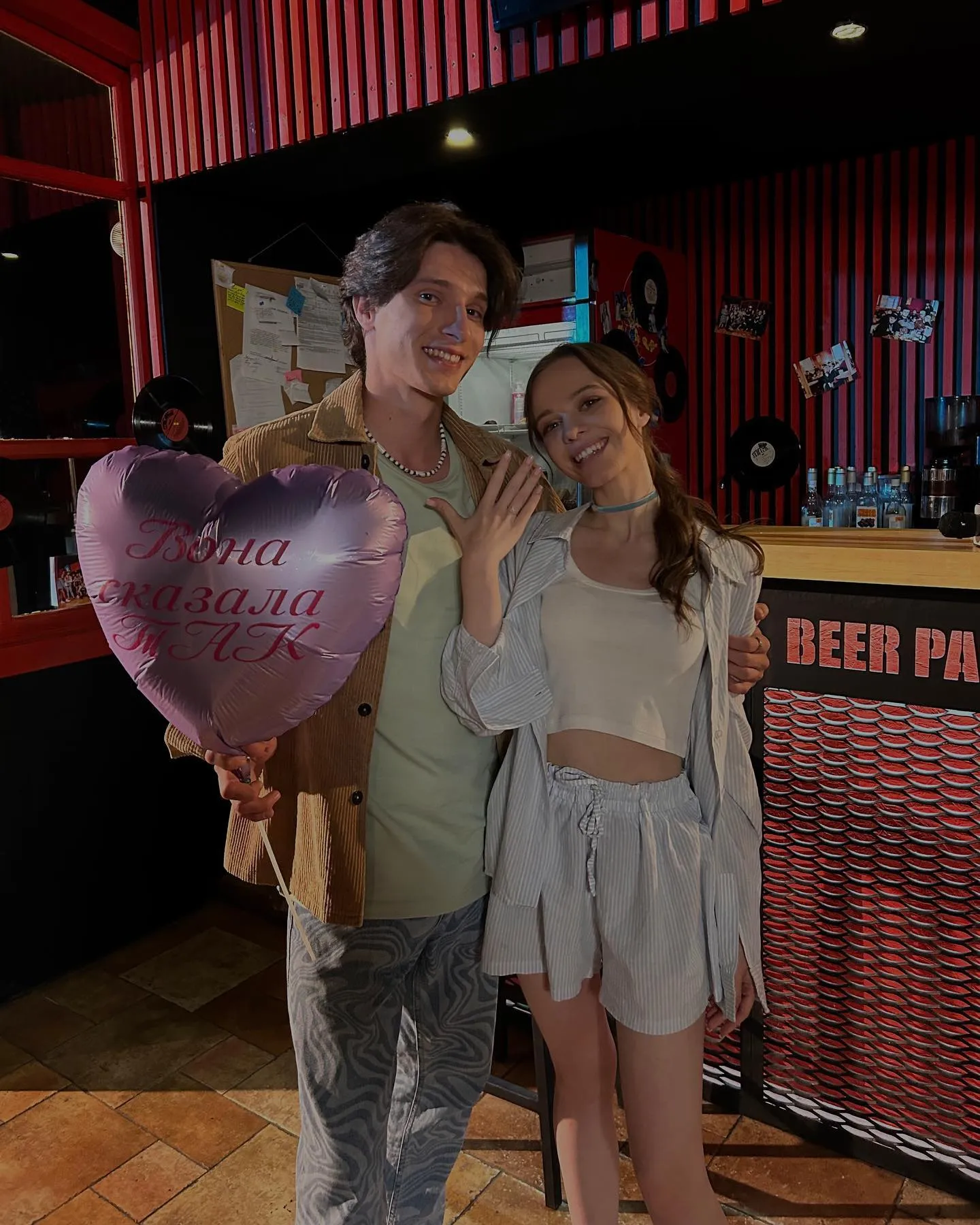 "Вітаю! Так приємно, що ви вирішили оголосити це прямо на знімальному майданчику!", – написав режисер та продюсер Нікіта Торжевський. "Дякую, що дозволив це зробити", – відповіла Кудашова.