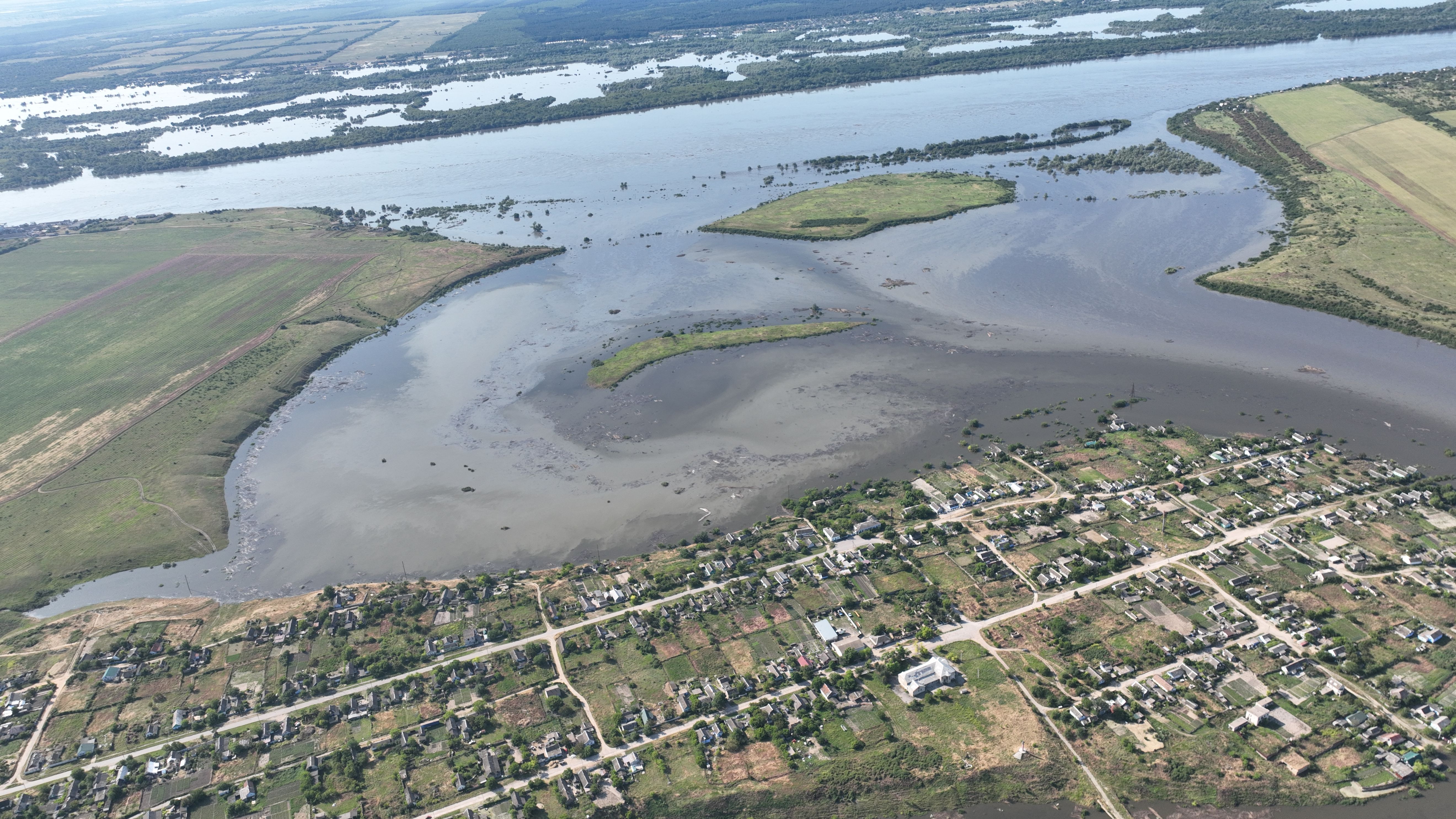 - Наслідки підриву Каховської ГЕС жахливі – у мережі з'явилися кадри з Херсонщини. Затоплені будинки пливуть по воді, видно тільки дахи.