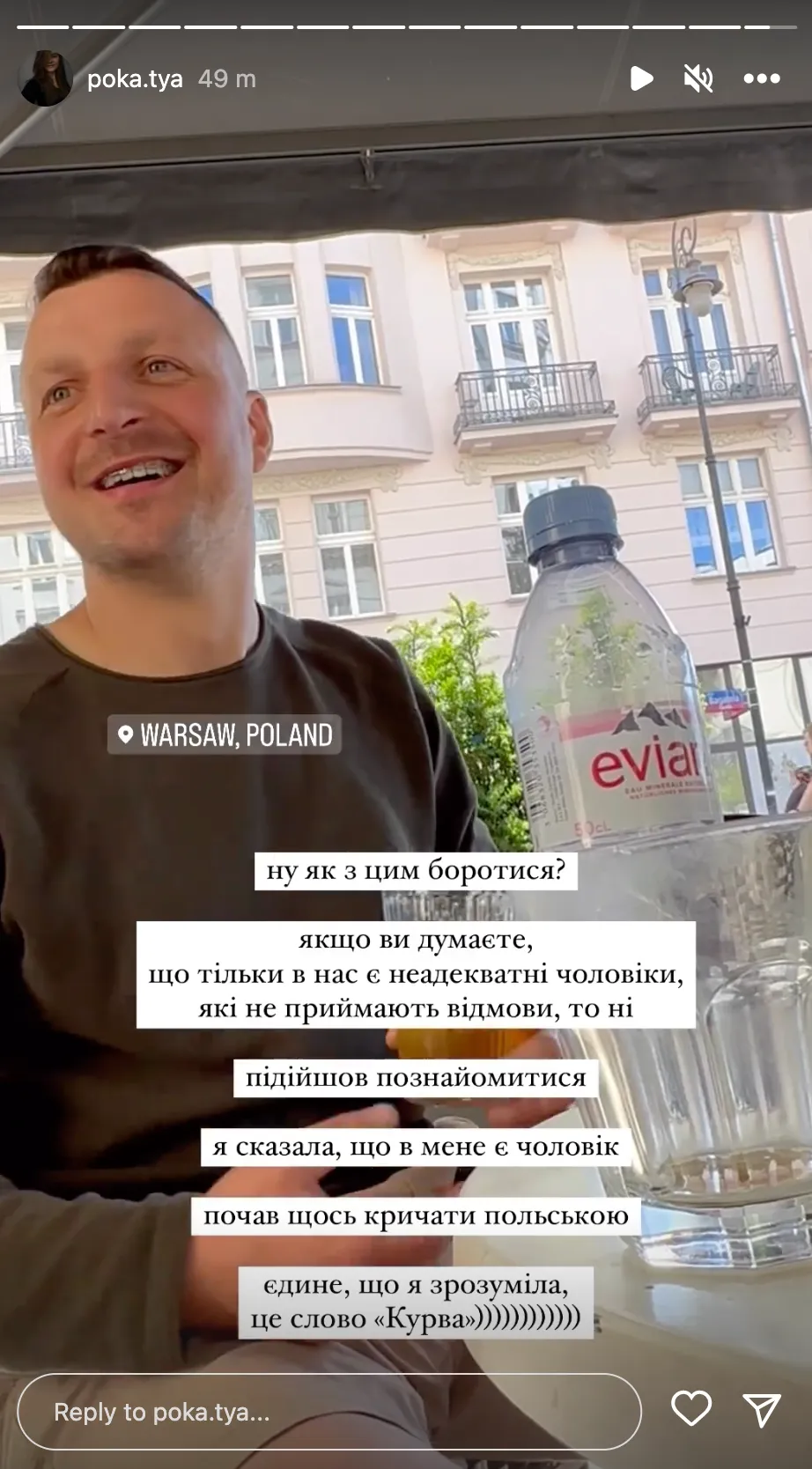 Ну як з цим боротися? Якщо ви думаєте, що тільки в нас є неадекватні чоловіки, які не приймають відмови, то ні. Підійшов знайомитися, я сказала, що в мене є чоловік. Почав щось кричати польською. Єдине, що я зрозуміла, це слово "к*рва",