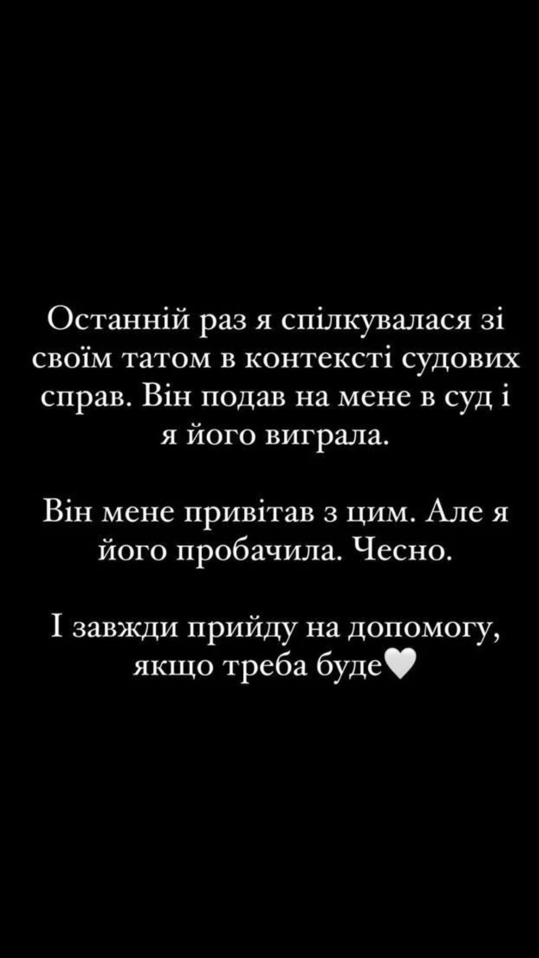 Так, між татом і Катериною виникла суперечка за право власності на квартиру. Пропозицію доньки придбати окреме житло, щоб уникнути судового позову, батько відхилив. На щастя, дівчина виграла справу.