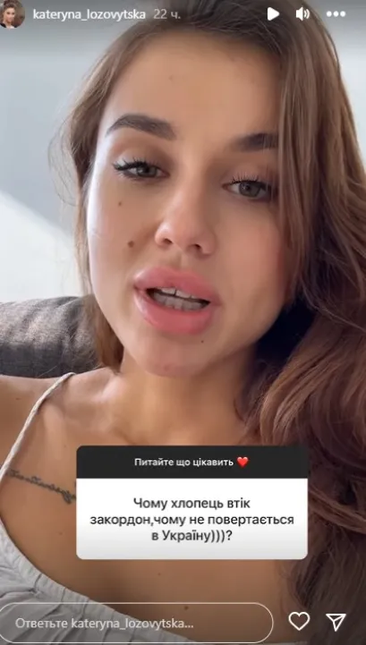 Зазначимо, що обранець Каті зараз проживає у Польщі. Підписники поцікавилися у Лозовицької, чому її коханий "втік за кордон". Дівчина відповіла в Інстаграм-сторіс.