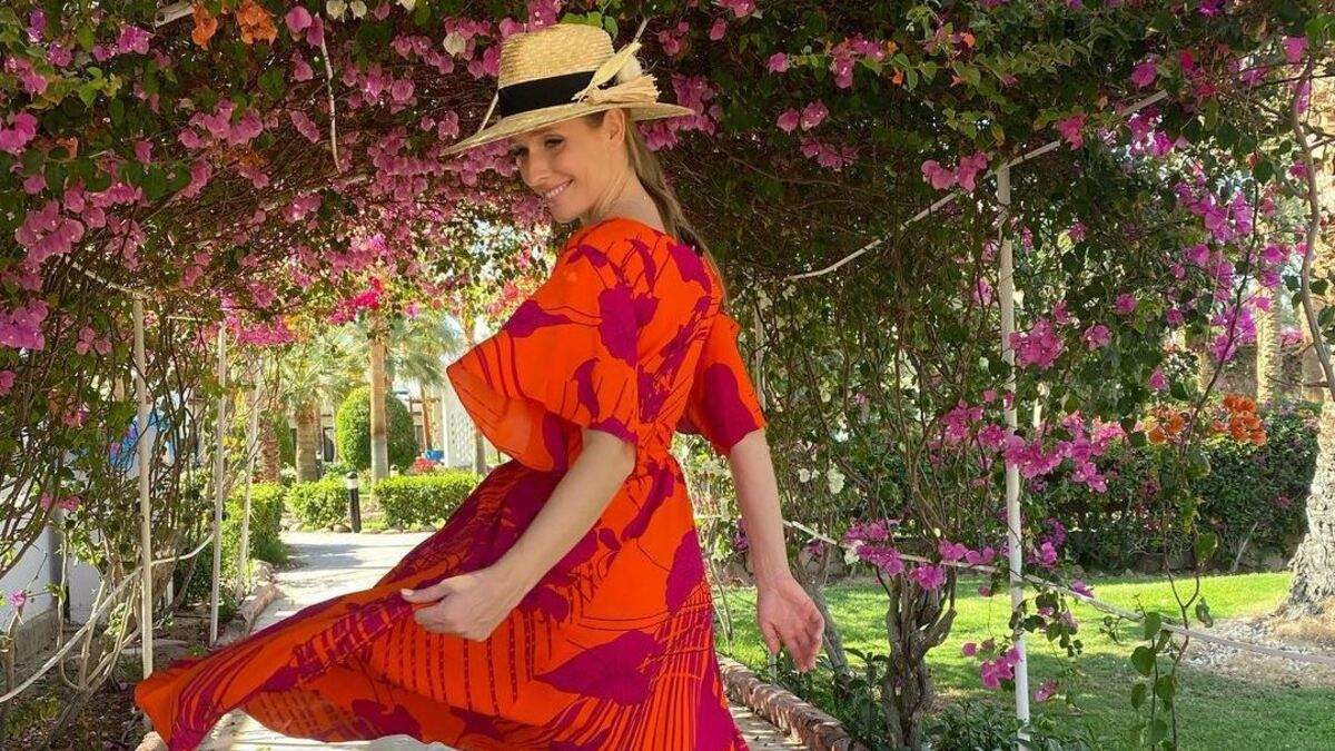 Знаменитість влаштувала невелику фотосесію в неймовірно красивій локації. Вона позувала у саду серед квітів. Катя Осадча підібрала відповідний аутфіт. Зірка постала перед камерою в літній сукні довжини міді мандаринового кольору з принтом та широкими рукавами. Об'ємна спідниця розвівалась на вітрі та додавала фото особливої атмосферності.