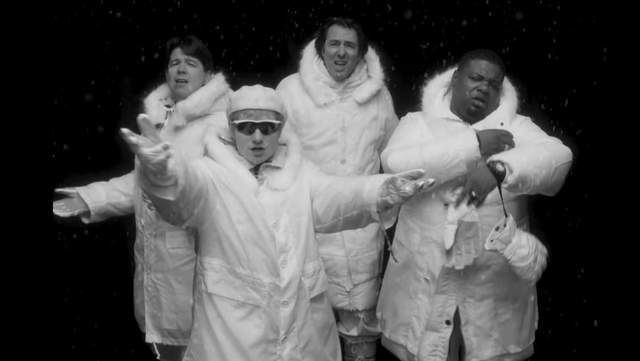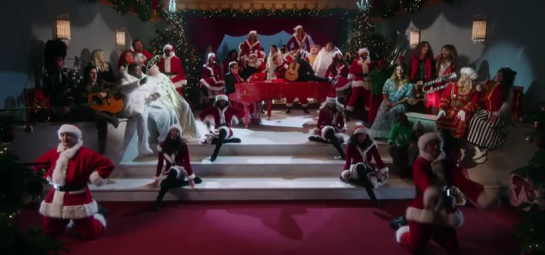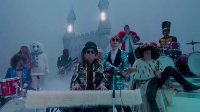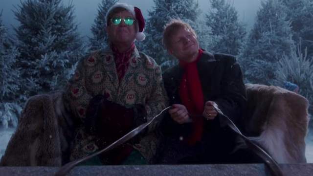 Потім Елтон Джон та Ед Ширан сидять разом на великих санках. Там Елтон одягнув схожий образ, як Шакін Стівенс з кліпу пісні Merry Christmas Everyone, а Ед Ширан став його напарником-помічником Санти.