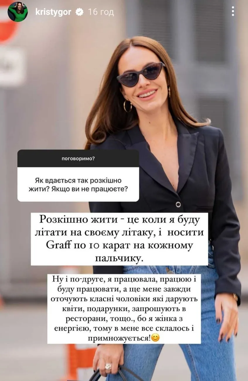 Христина Горняк розповіла про розкішне життя / Скриншот з її інстаграм-сторіс
