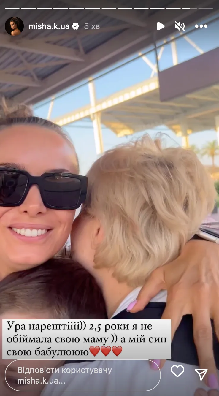 Ксенія Мішина з сином побачилася з мамою / Скриншот з її інстаграм-сторіс