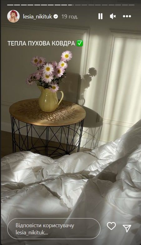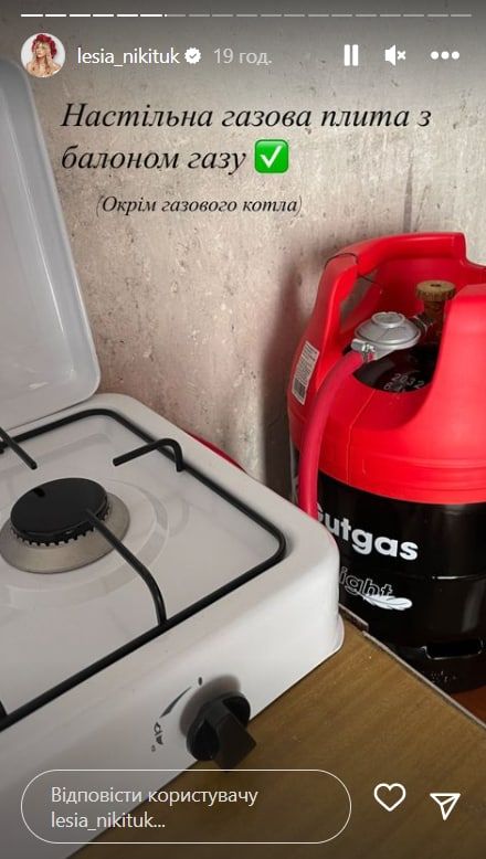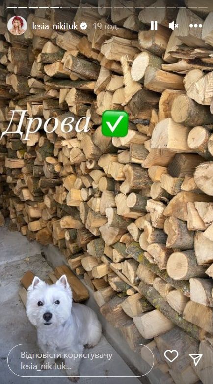 В інстаграм-сторіс Нікітюк показала, що вже запаслася дровами, купила настільну газову плиту з балоном. Вдома в зірки є камін, який на випадок надзвичайної ситуації буде альтернативним опаленням. Також Леся вже придбала теплу пухову ковдру. Єдине, що залишилося купити – генератор.