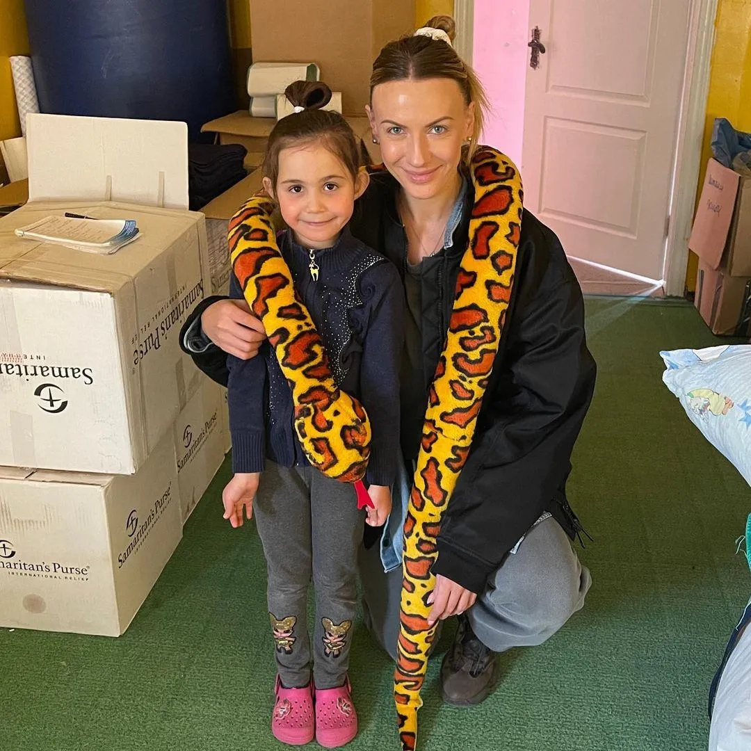 "За час поки шукали квартиру, ми здружились.. Лейла малювала мені по 20 малюнків в день, а маленьку Аню я таскала на руцях щодня.. таке янголя. Сьогодні Лейла складала речі, вибрала собі іграшкового удава з гуманітарки й запросила мене на чай в її нову квартиру… а я їй не відмовила", – додала зірка.