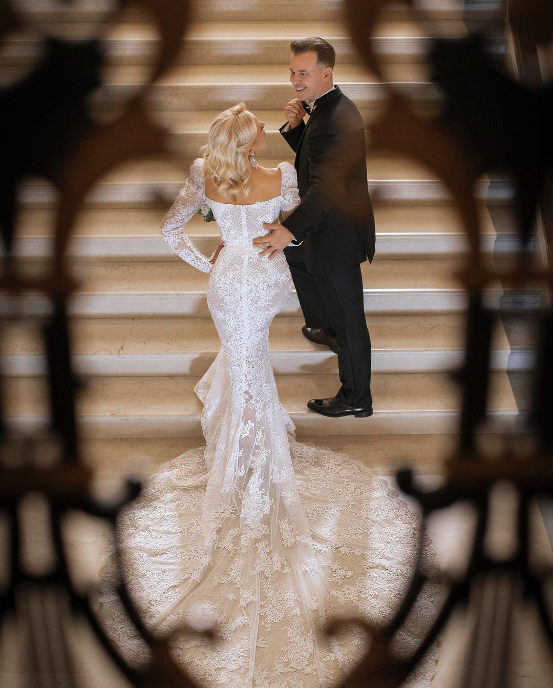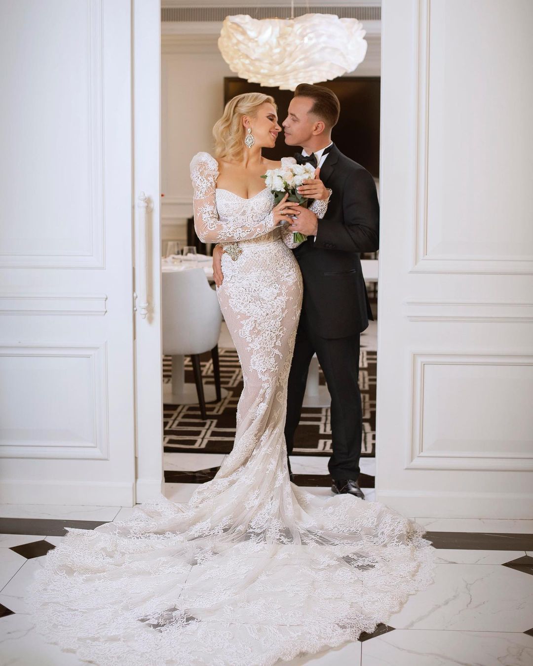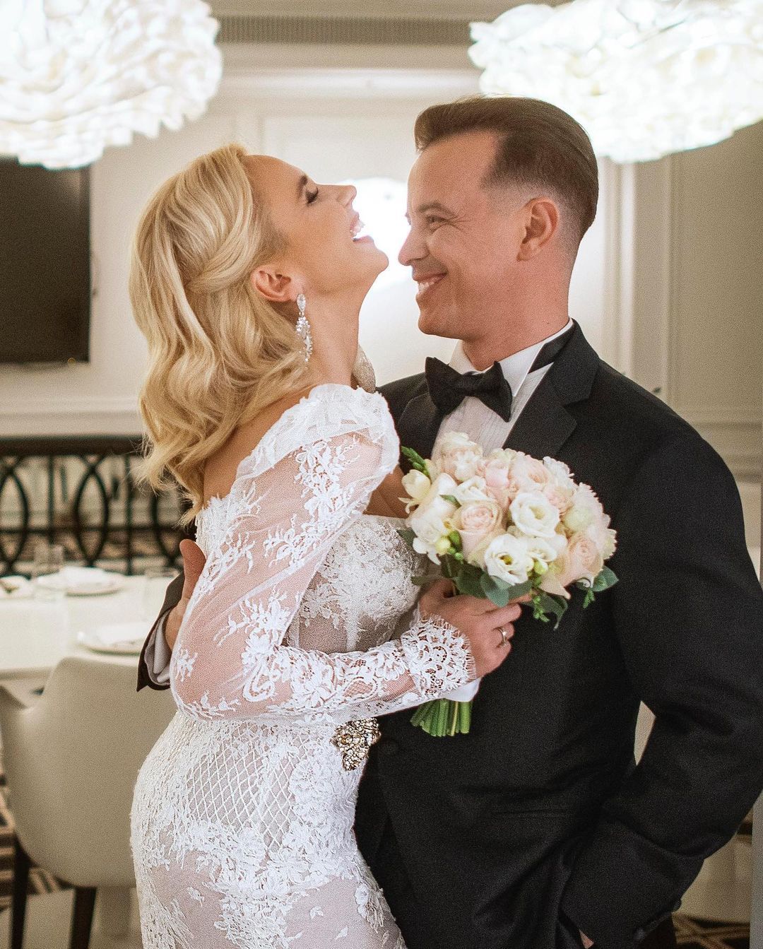 Лілія Ребрик опублікувала в інстаграмі зворушливий допис та прикріпила розкішні фото, які зробила торік на ювілейну річницю весілля. Тоді вона одягнула схожу сукню на весільну, у руках мала букет, а її чоловік обрав чорний костюм з метеликом.