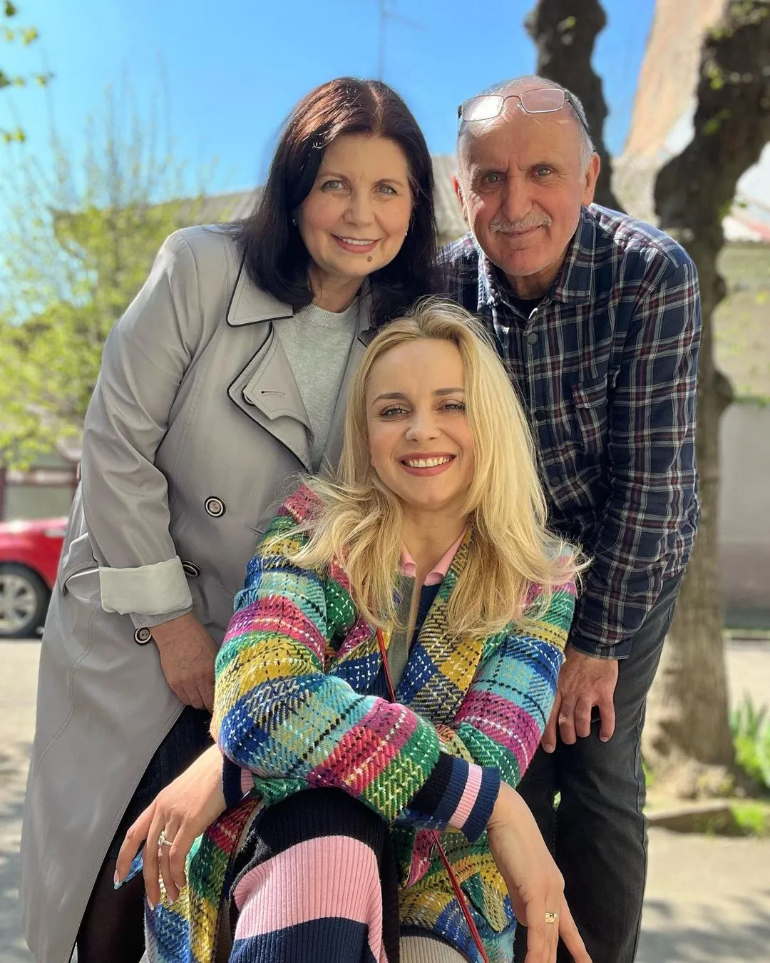 Акторка поділилась рідкісним фото з прогулянки з батьками у сонячних Чернівцях. Вона позувала перед камерою у смугастих штанах та яскравому пальті.