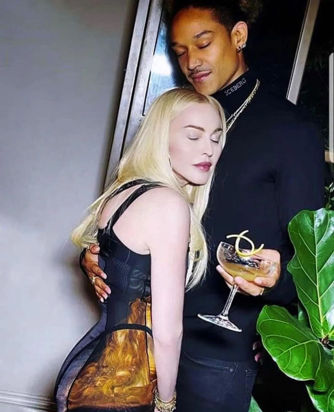 На одному з фото Мадонна позувала зі своїм бойфрендом Ахламаліком Вільямсом. Разом з ним вона нещодавно відправилась у подорож. Хлопець позував у чорній кофтині та з золотими ланцюжками на шиї. Закохані заплющили очі – схоже, в обіймах один одного вони почуваються безпечно.