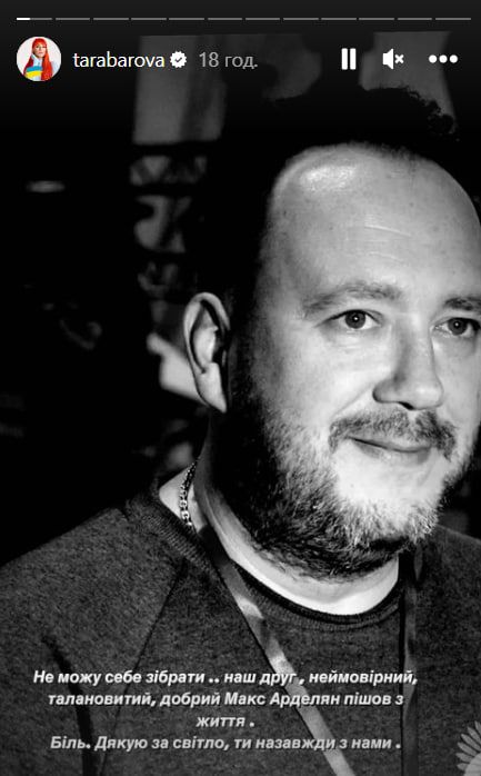 - Світлана Тарабарова: "Не можу себе зібрати. Наш друг, неймовірний, талановитий, добрий Макс Арделян пішов з життя. Біль. Дякую за світло. Ти назавжди з нами".