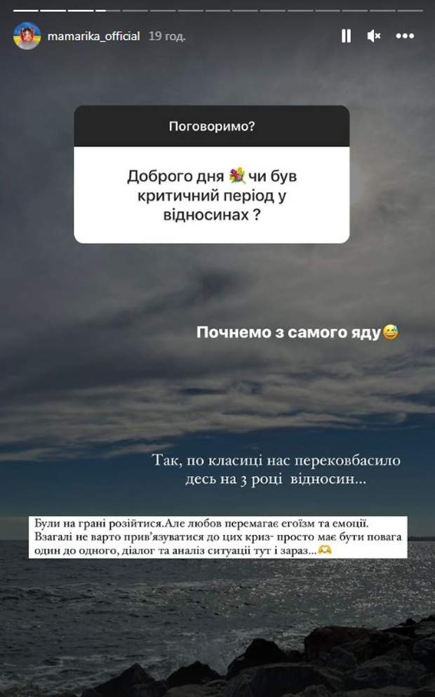 MamaRika про кризу в стосунках / Скриншот інстаграм-сторіс співачки