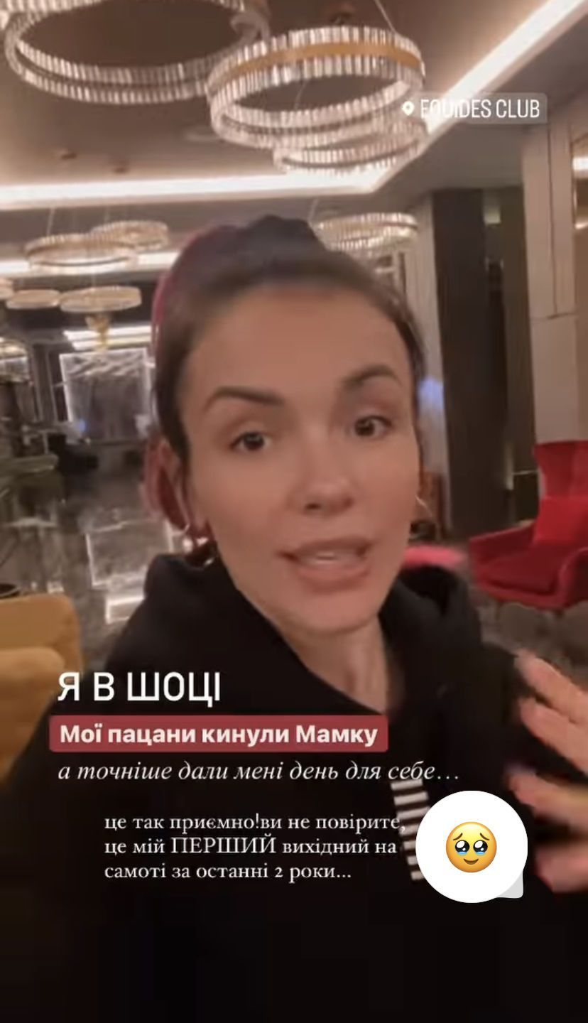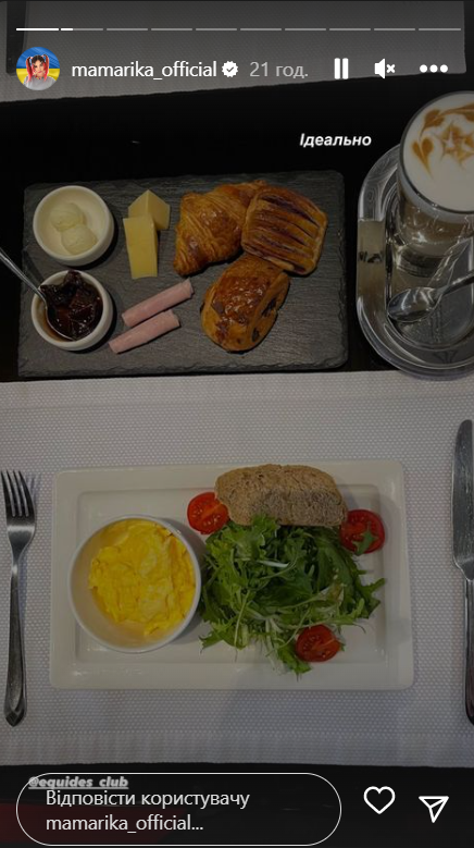 У сторіс зірка розповіла, що мала вирушати на короткий відпочинок з чоловіком і сином, але Сергій влаштував їй сюрприз і відпустив саму. Цілий день MamaRika провела у відпочинковому комплексі недалеко від Києва. Артистка насолодилася смачним сніданком, поніжилася у білосніжному ліжку та побувала в SPA. Такий день перезавантаження був дуже необхідний.