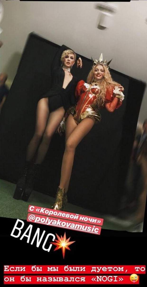 Фото з'явилось в Instagram-Stories MARUV. Мабуть, артистки зустрілись на одному з музичних проектів, адже перед камерою постали у сексапільному сценічному вбранні. Так, Оля Полякова позувала у червоному боді "Королеви ночі", а MARUV – у чорному боді зі сексапільною зоною декольте.