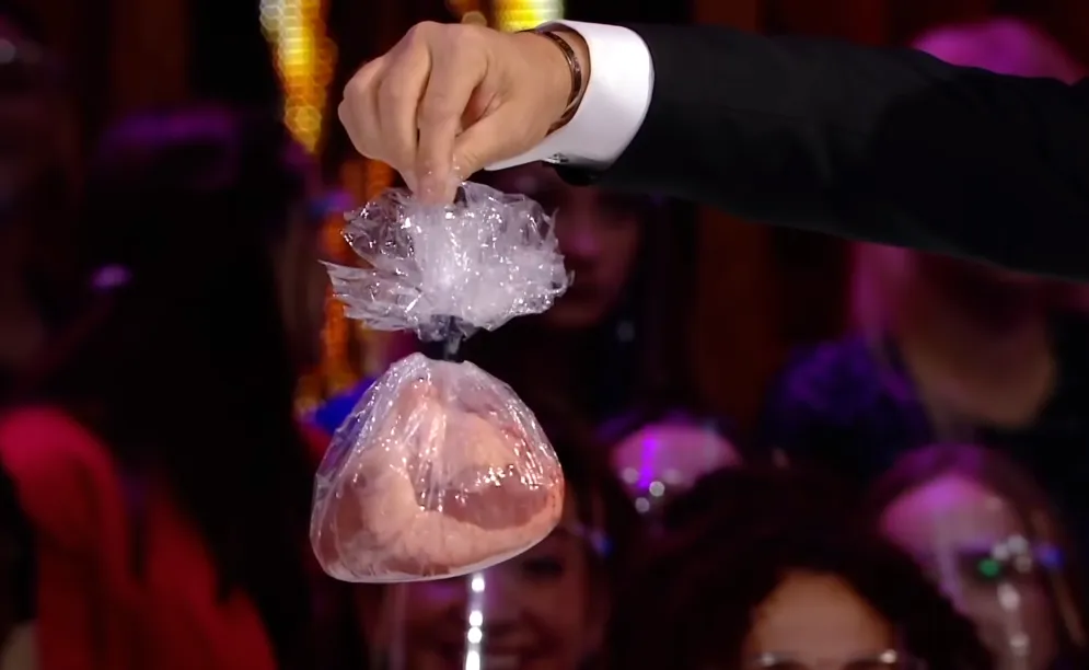Так, знаменитість вручив балерині серце. Катерина Кухар стримано відреагувала на подарунок і зазначила, що його слід передати в анатомічний музей. У висновку пара отримала 13 балів.