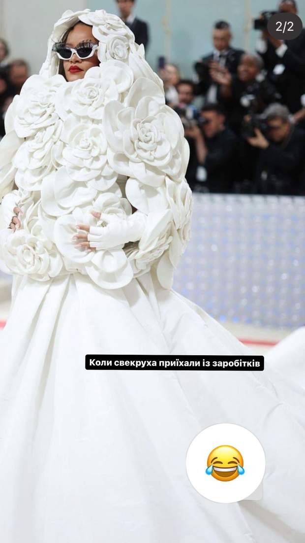 Ведуча й блогерка Леся Нікітюк не оминула увагою цьогорічний бал та прокоментувала найцікавіші вбрання. Наприклад, вбрання Ріанни нагадало їй одяг свекрухи, яка повернулась із заробітків.