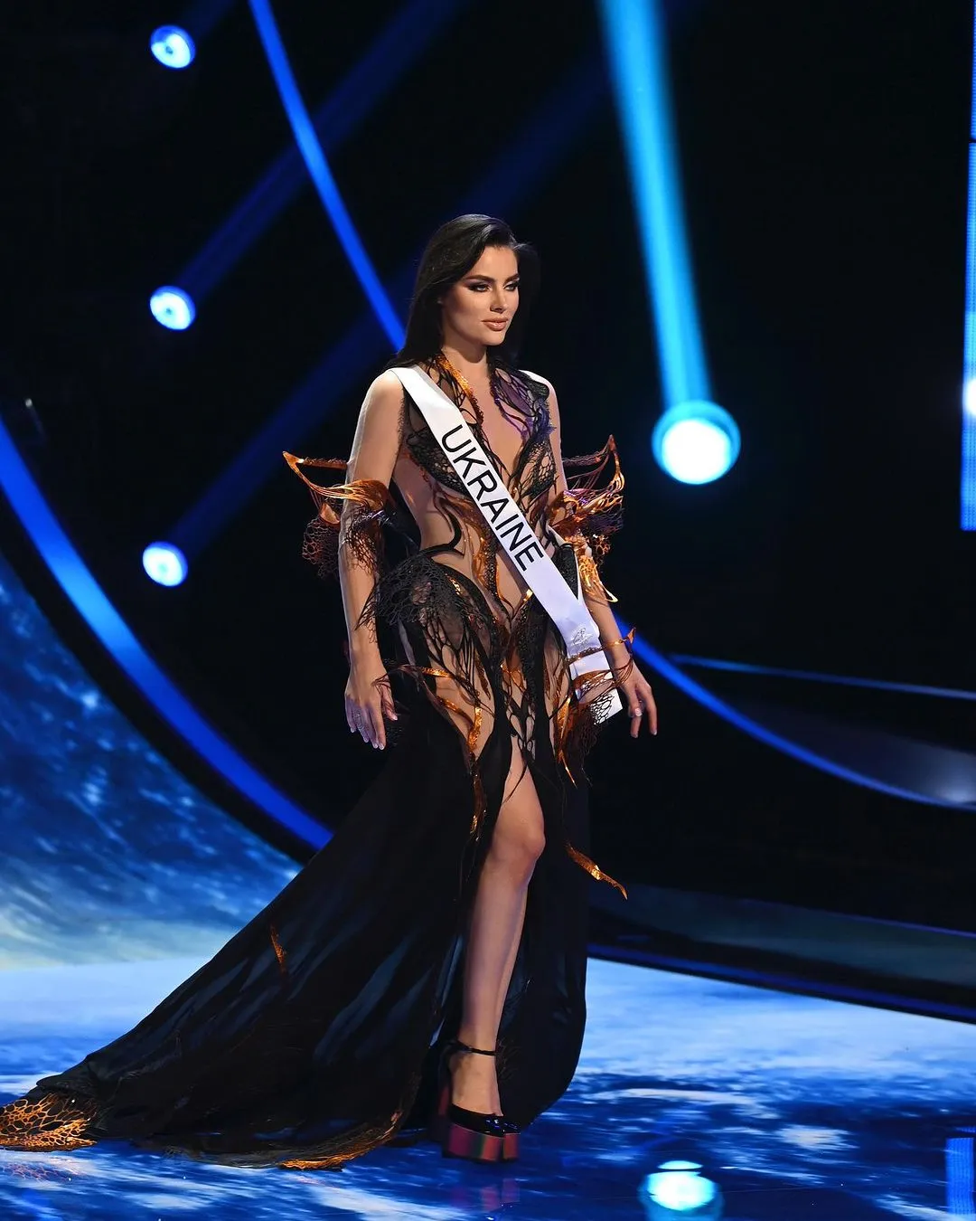 Для півфіналу "Міс Всесвіт" Ангеліна Усанова постала у сукні Phoenix Rising. Вбрання символізує Україну – вона немов фенікс відродилась у свободі, незалежності та красі.