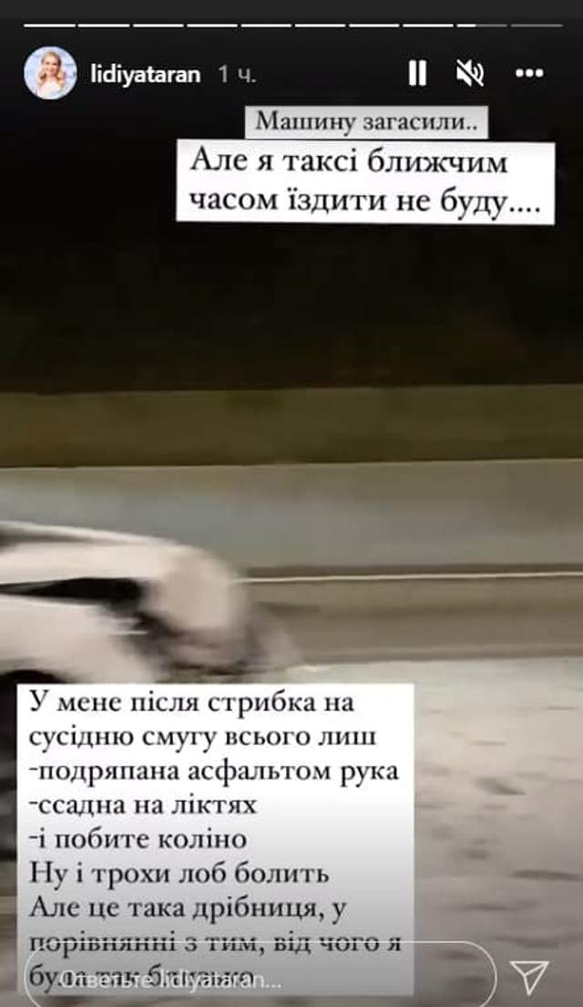 Лідія Таран про ДТП / Скриншоти з інстаграм-сторіз ведучої