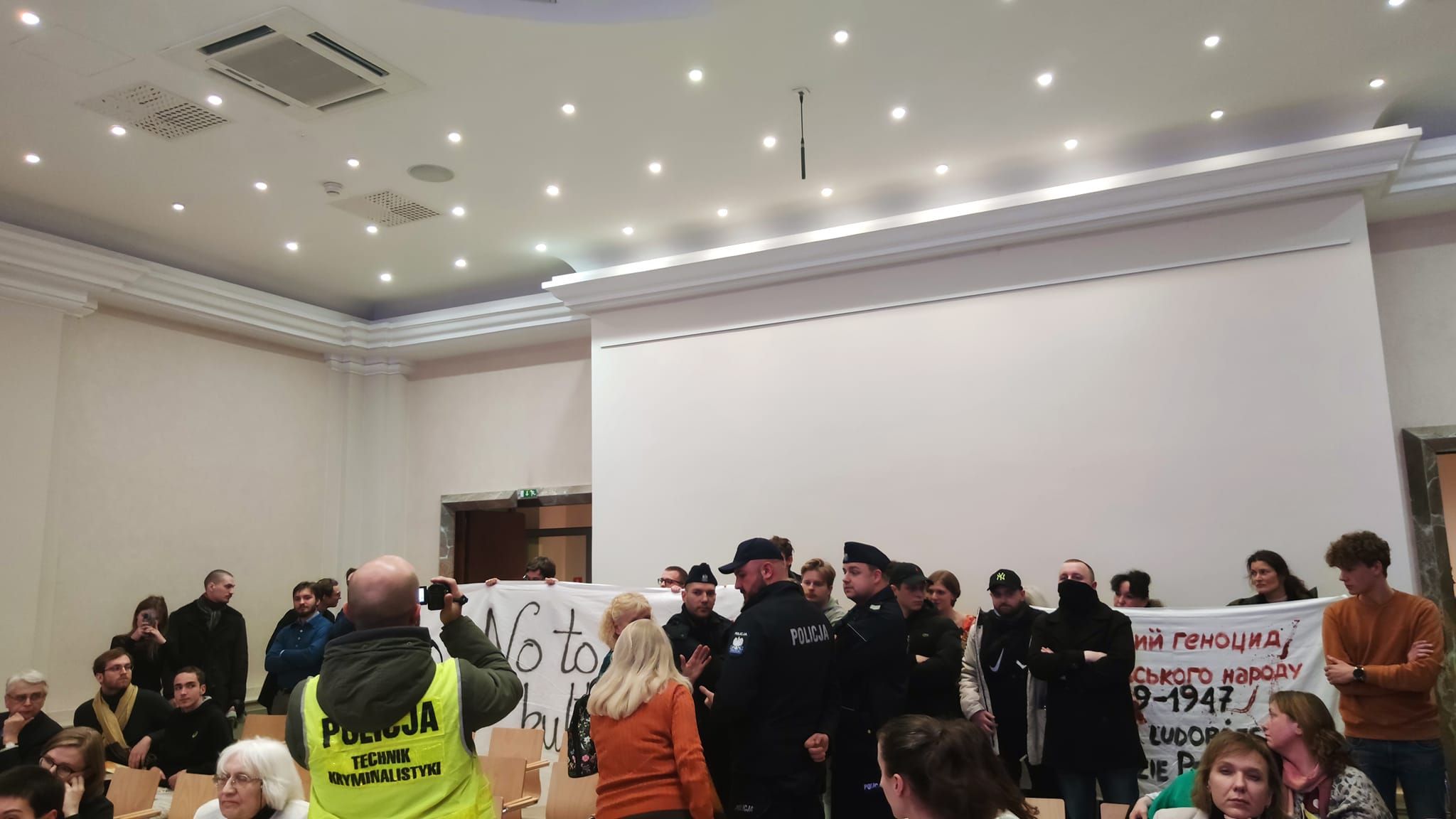 Зустріч відбулась 21 листопада у Міжнародному культурному центрі, де була присутня Забужко та її прихильники. Щоправда, її перервали польські націоналісти, які розгорнули плакати, де були зображені перекреслені обличчя Бандери та Шухевича.