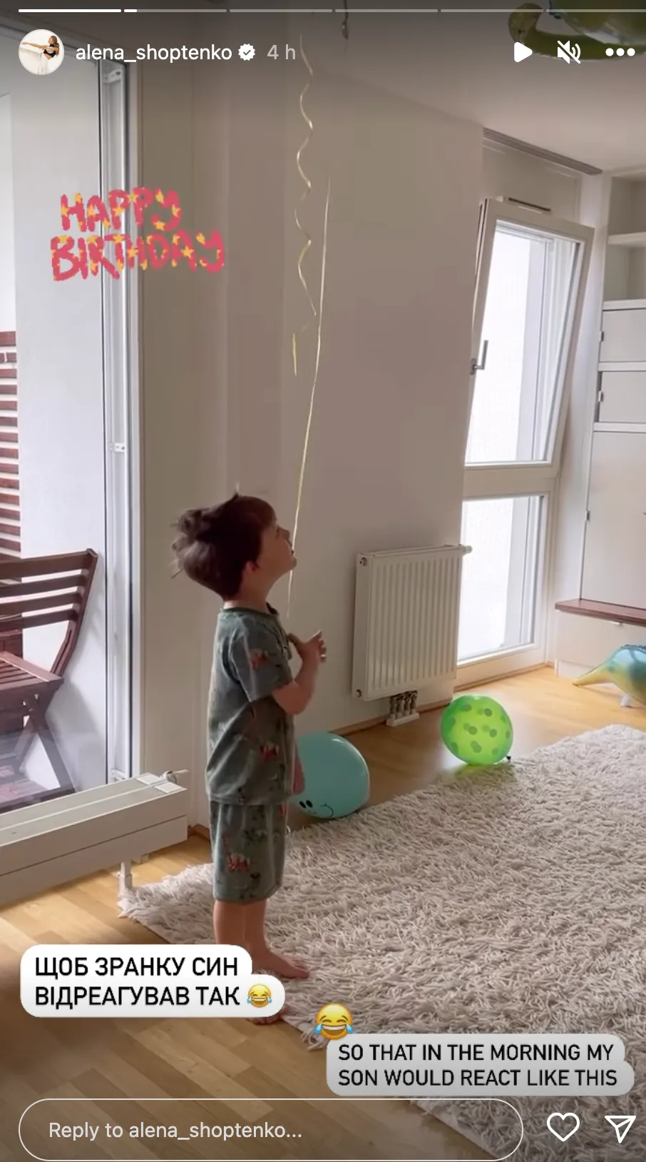 На фото помітно, що Олена готувалася до дня народження сина. Зокрема, вона прикрасила квартиру повітряними кульками та влаштувала йому день пригод.