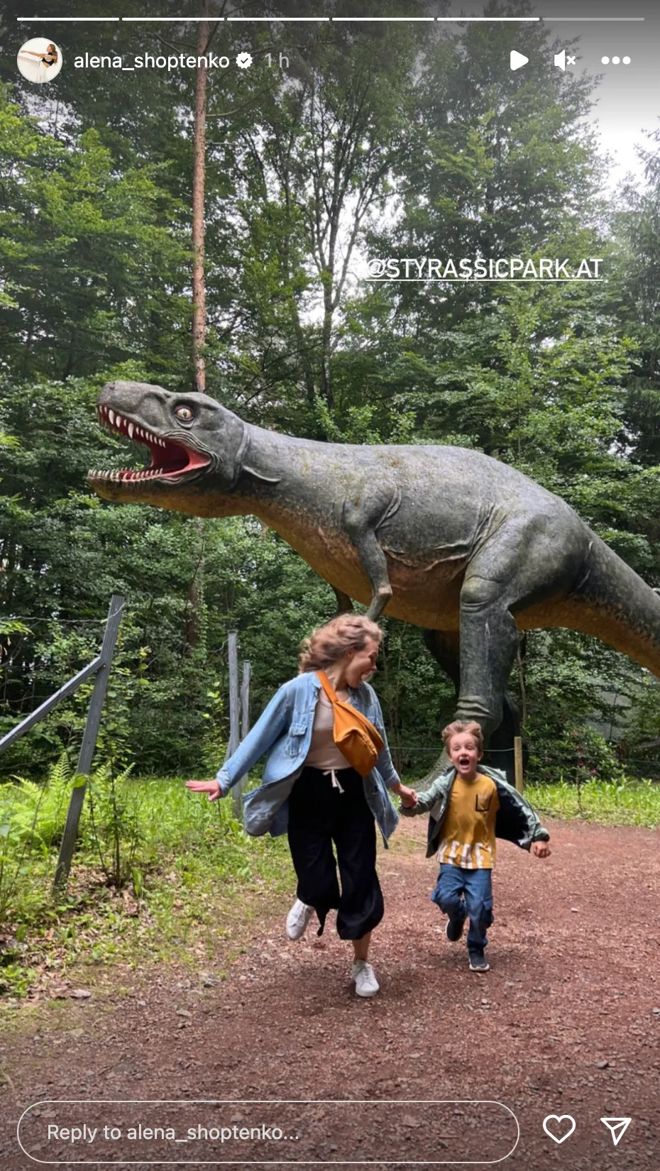 Також хореографиня сфотографувала сина біля динозаврів, а це саме те, що обожнює маленький Олексій.